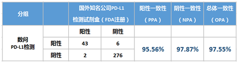 数问生物PD-L1试剂盒和检测服务已经被多家著名领先制药公司(例如恒瑞)用于抗PD-1免疫治疗药物的数十个临床试验,为中国的肿瘤免疫治疗药物开发贡献力量。数问生物旗下美国病理学家协会CAP认证的数问观止医学检验中心也顺利拿到CAP的 PD-L1项目的2017年度的室间质评优秀成绩单,与国外Dako、Ventana等公司的检测结果高度一致,体现了数问生物开发的PD-L1试剂盒的高品质,同时也证明了数问观止检验中心可靠的检测能力。此外,通过327例的临床样本检测,数问生物PD-L1检测与Dako 22C3试剂盒高度的一致性(总体一致性97.55%)。