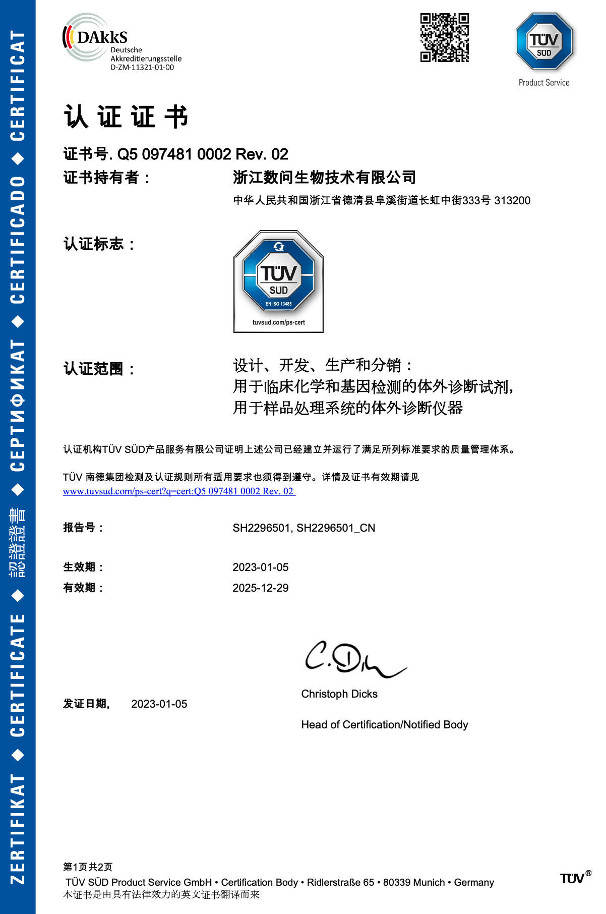 数问生物是一家专注于创新体外诊断试剂及配套仪器开发、生产、销售和医学检验服务的国际化企业,打造女性健康诊断领域的国际化的龙头企业。总部位于浙江德清莫干山国家高新区,在杭州、金华、安徽宣城、德国柏林设有研发、生产和销售基地和团队,是国家级高新技术企业,拥有“创新医学诊断省级企业研发中心”和完善的诊断试剂盒生产和质检设施,也是浙江省唯一的省级“创新标志物医学诊断技术国际合作基地”。