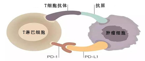 肿瘤细胞上的PD-L1分子可以与T淋巴细胞上的PD-1分子结合,传递抑制性信号,使肿瘤细胞不能被免疫系统清除。