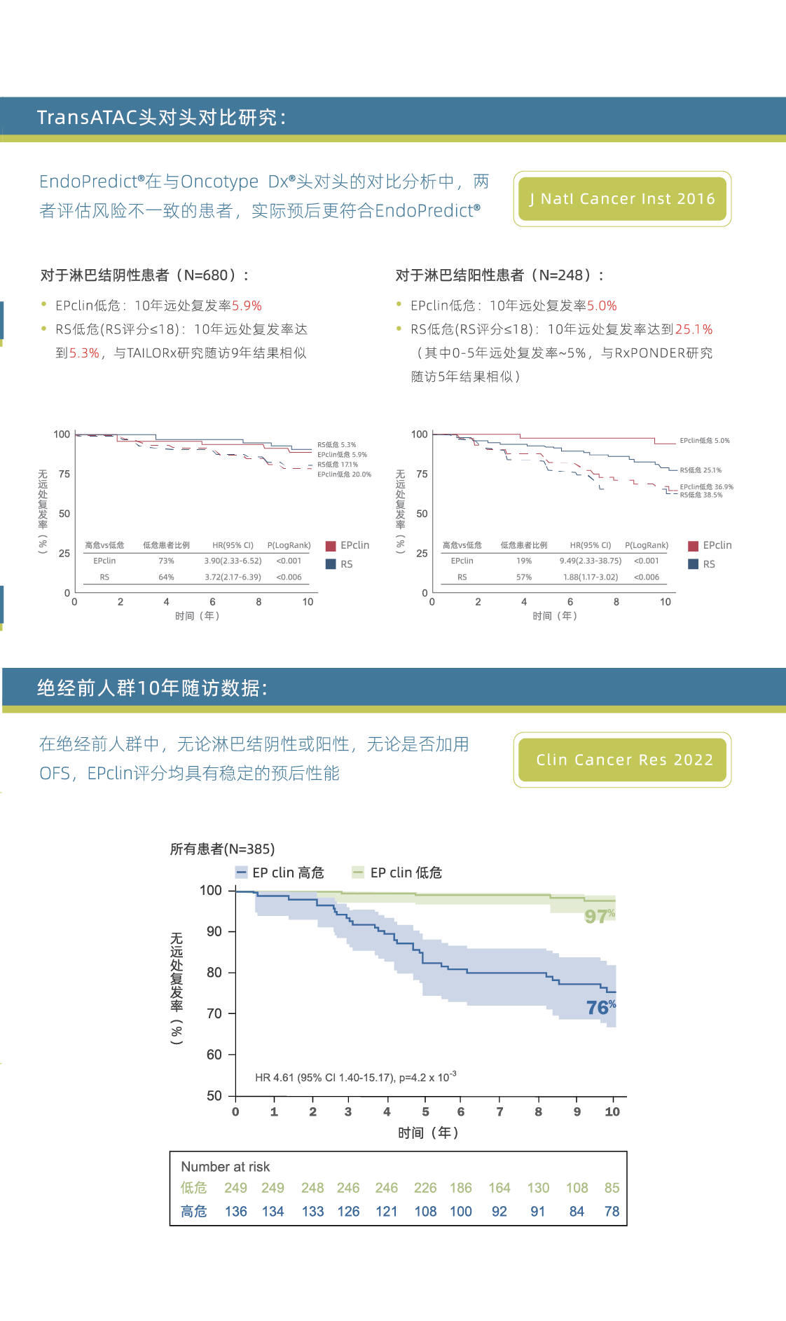 • 通过精准的长期预后预测,帮助指定更合理的术后化疗和(或)延长内分泌治疗决策